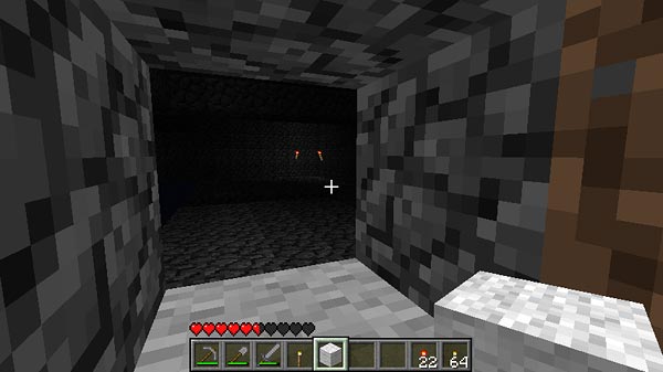 アイテムの改修場所がトラップタワーから24ブロック離れたところにあるわけですが、地下なので、当たり前ですが暗い。