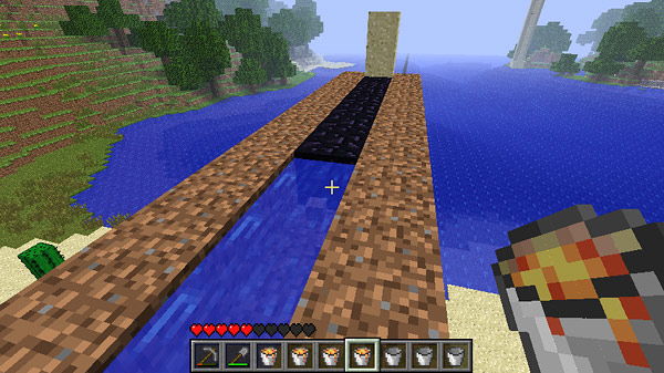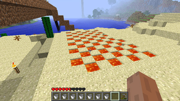 水平部分は海と同様に水に溶岩を掛けて生成させる予定なので、その為の淵を作ることにします。