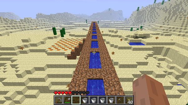 ちなみに、淵作りにも時間がかかるので、その間は砂漠に溶岩をストックしておきます。溶岩自体は、ここに来る途中にネザーでゲットできるので。