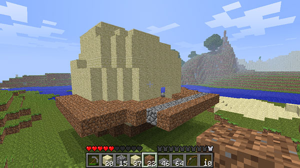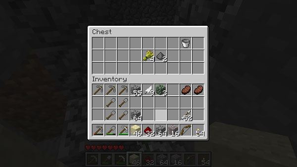 デバッグモードにして座標を確認すればこの作業は必要ありませんが、デバッグモードは使わない方針なので、手間なのですが、この方法を取ります。でも、結構楽しいですよ。丸石を掘り当てる感覚は。