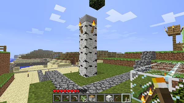 | 第1回 | スニーク中では落下しない 木は地表1ブロックを後回しにして伐採 羊は染料をぶっ掛けると染まる 砂/砂利はタイマツで手間掛けずにゲット インベントリ/チェスト/ワークベンチの便利操作 |