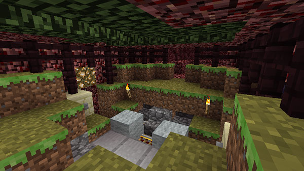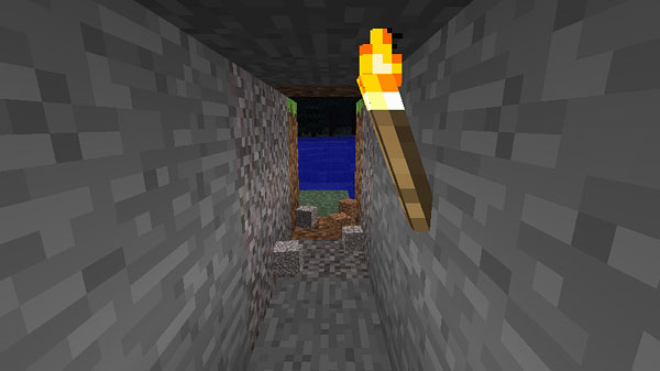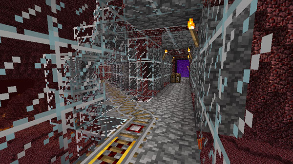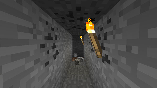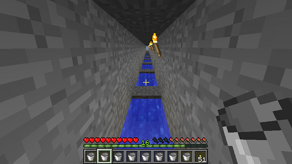 地下は最初にトラップタワーを作った時のように、上層と下層の同じ位置に坑道を掘っておき、一定間隔で上から下に直下掘りをしまくるという方式を取ります。
