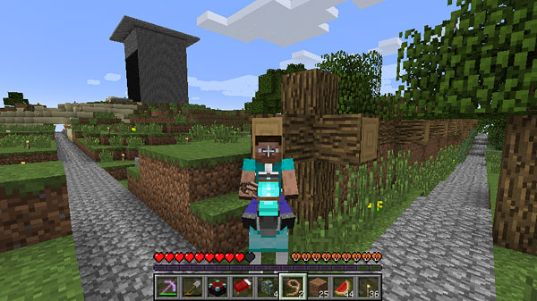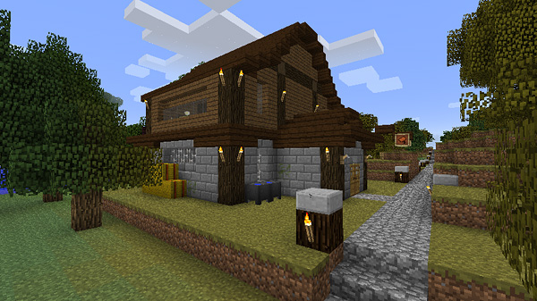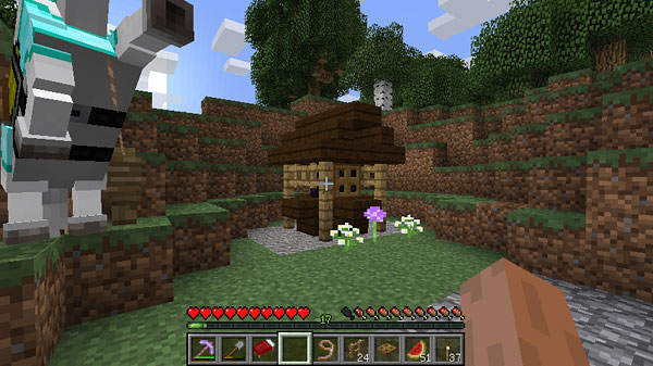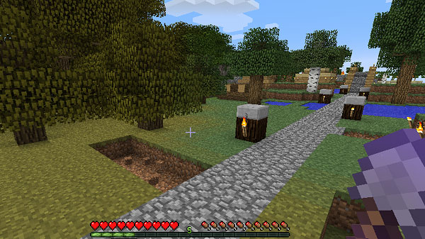 スクリーンショットのようにかなり広い平原になっています。村が見えますけど、あれはNPC村人が登場する以前に生成されたので無人になっています。