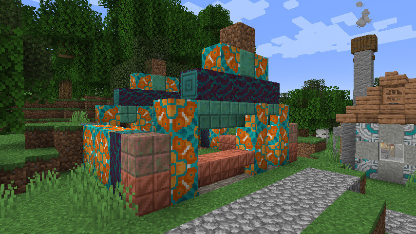 前編の最初のスクショでは、左から天然の滝が流れていましたが、そちらは堰き止めて、人口の滝に変えました。