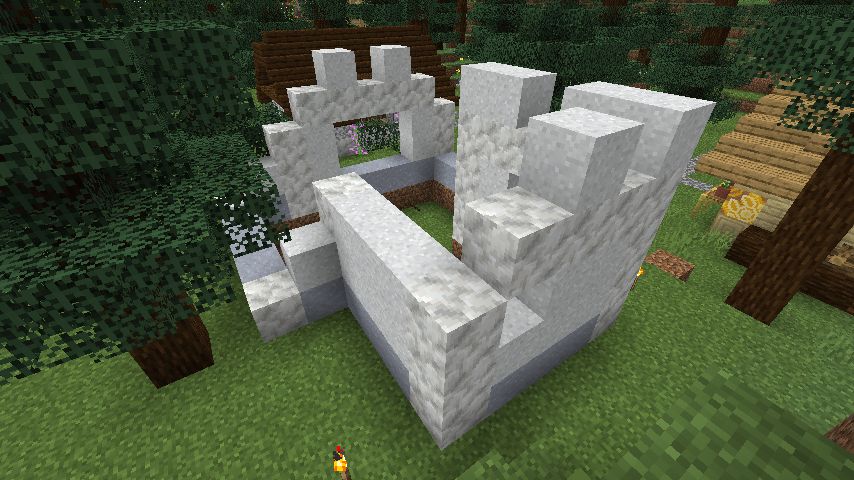 というわけで、今回はここに川、と言っていいのか分かりませんが、水を引こうと思います。まず、地面を砂利に変えました。あとで考えると、丸石の上に乗せる手はずだったのかも知れませんが、記憶の彼方なもので・・・
