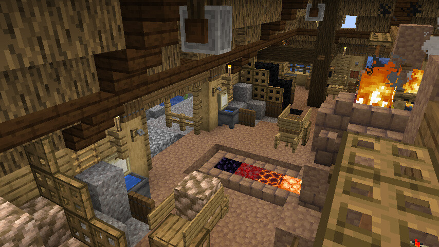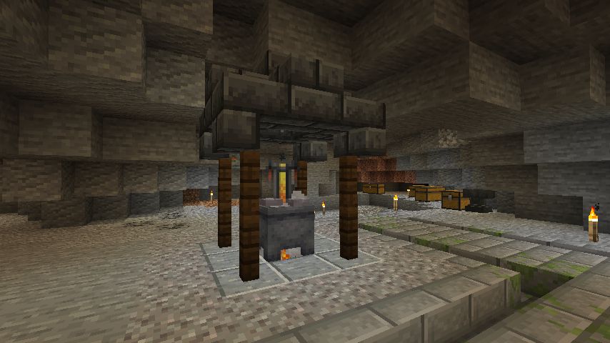 冷やした大きな塊の鉄をここに持ってきて、細かく砕きます。