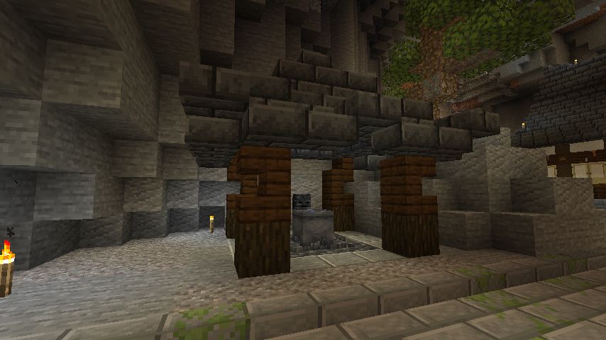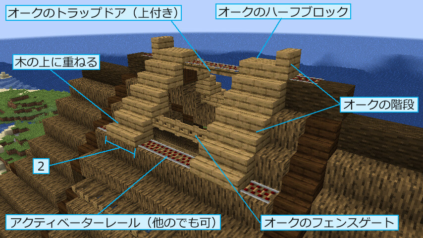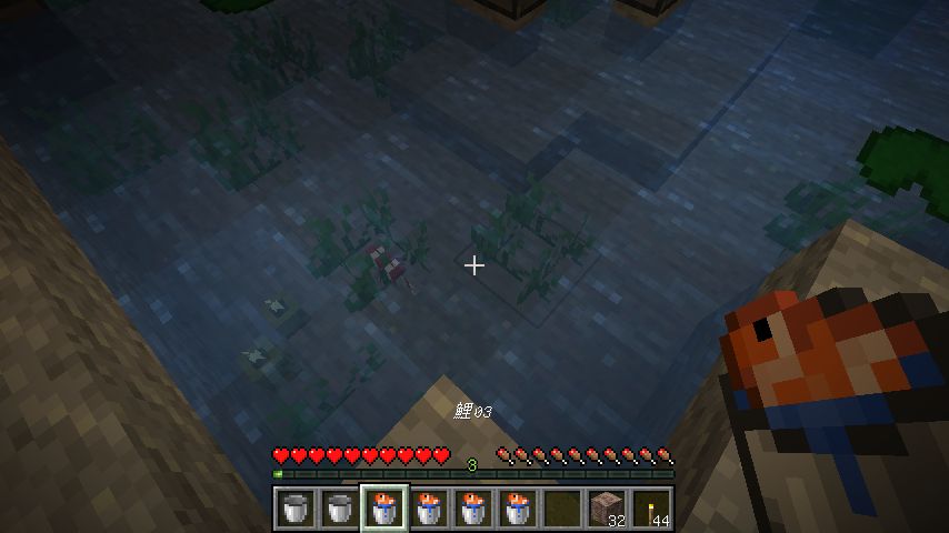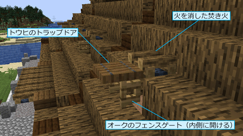前のスクショで水路が左の方に伸びていますが、ここには水車を設置します。