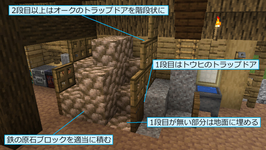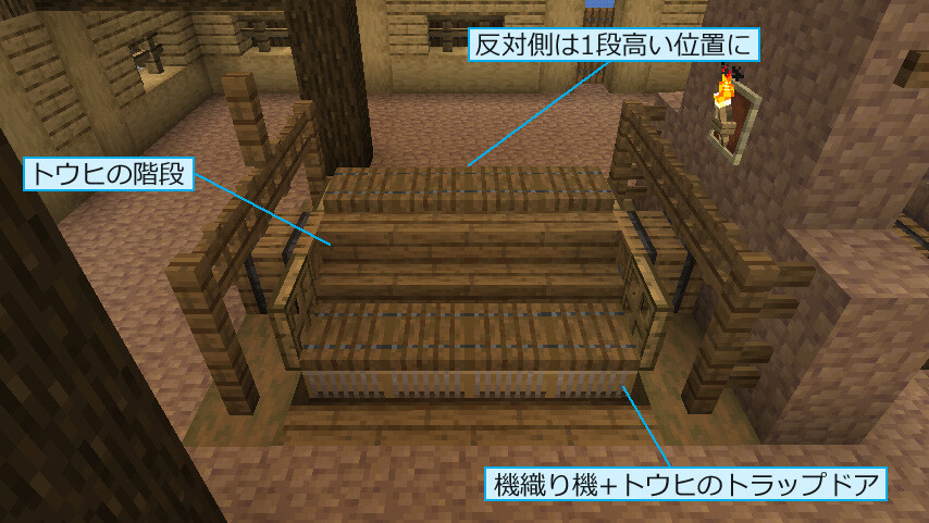 高い位置に水車を設置すると、水路が高殿の目の前を横切る形になってしまうため、ギリギリの場所を掘って高低差を設けました。