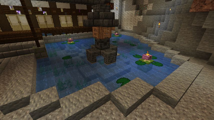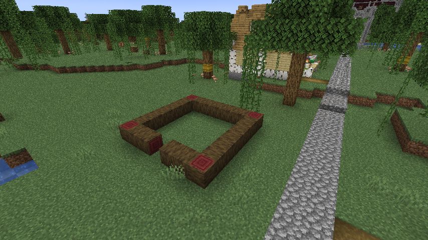 人工的な感じにしたかったので元の形状を残しつつ縁を丸石に変えました。