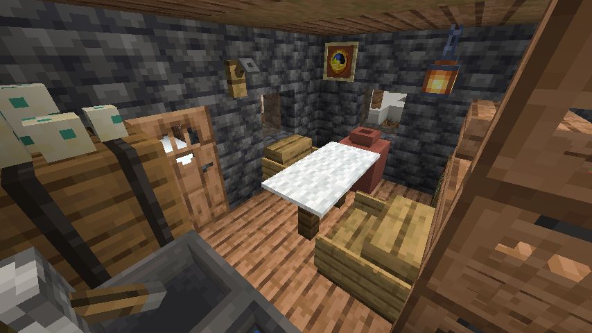 小さい家ですが、中間で分けられており、奥には寝室が用意されています。