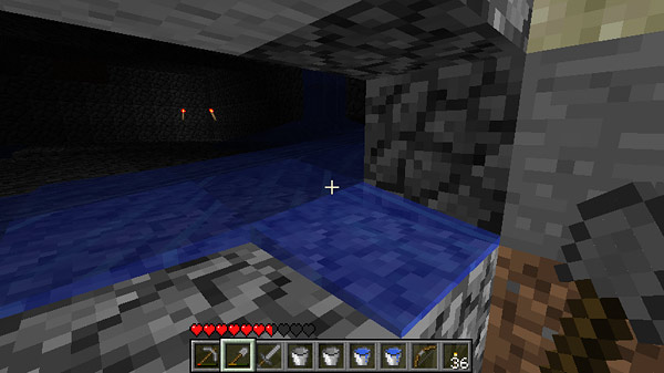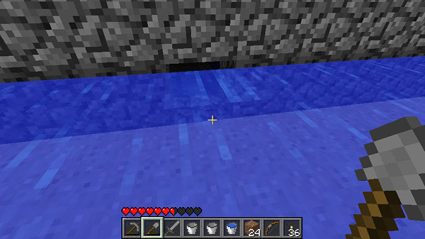 どっかで水が変になっているみたいです。中央の4マスには本来は水が流れてはいけないので。