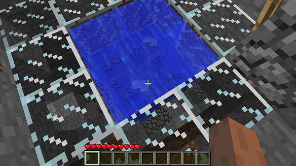 トロッコ鉄道が開通するまで、暫定的な通路として水を張って、落下できるようにしてみました。