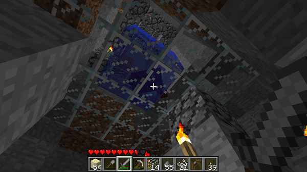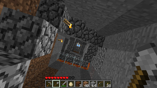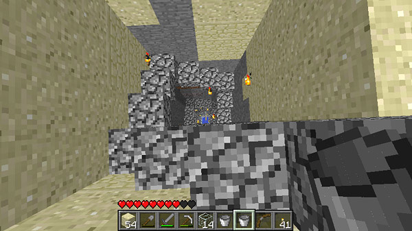 アイテムの改修場所がトラップタワーから24ブロック離れたところにあるわけですが、地下なので、当たり前ですが暗い。