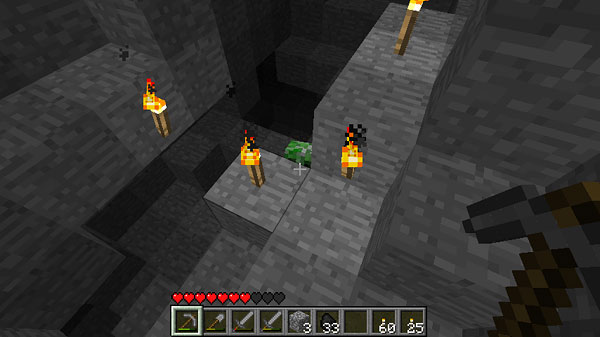 直下掘りで結構高い空洞にぶつかると落下ダメージが結構痛い。