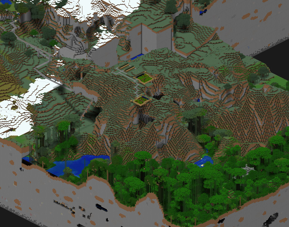 バージョン1.3の新要素であるジャングル寺院を探す際に広がった南西の地区がエメラルド山岳区として加わりました。こちらはこの100エントリー内で開発が始まりました。