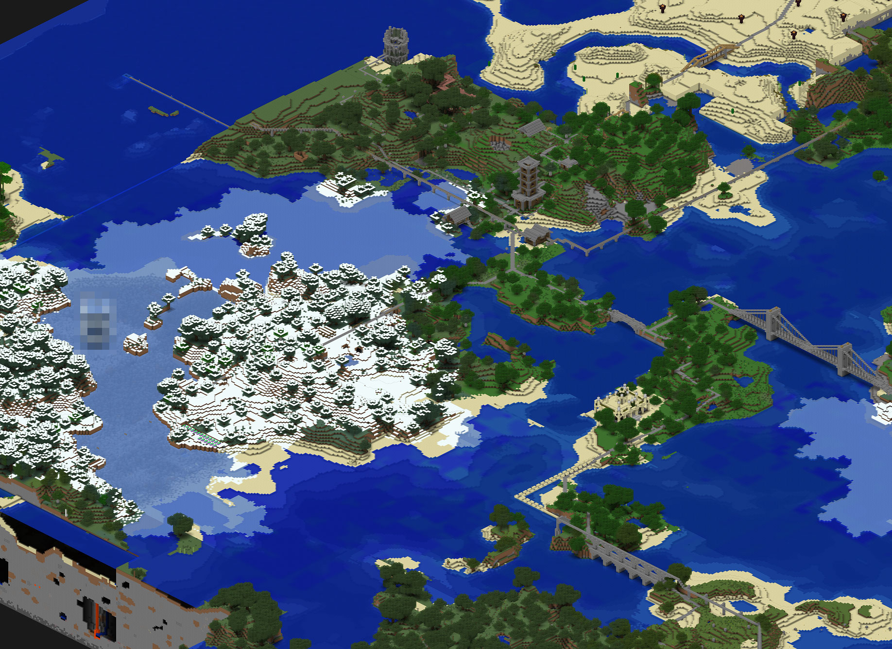私自身が個人的にお気に入りのものでは、皆さんの反応を含めてやったぜ感があった西大陸のアッ××トこと「新たな村を作る」シリーズと、北大陸の「北大陸に浮遊島を作っちゃう」、そしてゾンビヌスという名前を頂いた「バージョンの壁にオブジェを造る」ですね。モスクや各種橋なんかも、比較的満足な出来で気に入っています。