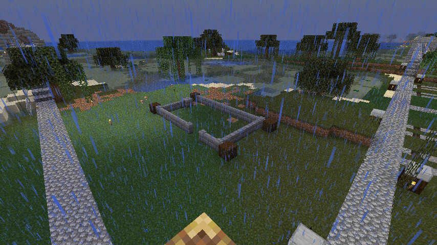 壁は石レンガの塀をメインに低めに作ります。
