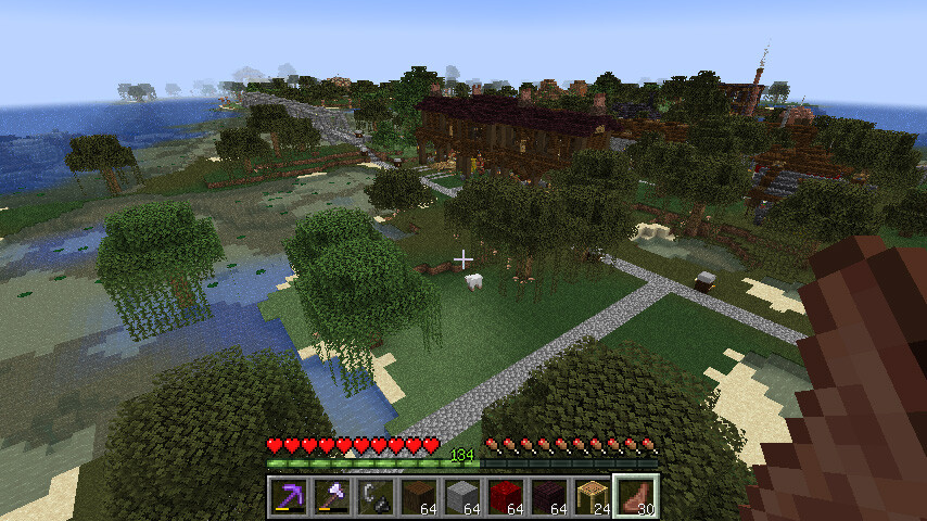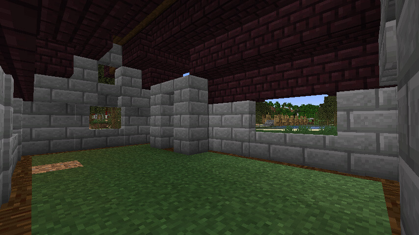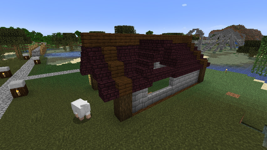 屋根は周辺の建物と合わせてネザーレンガで暗めに