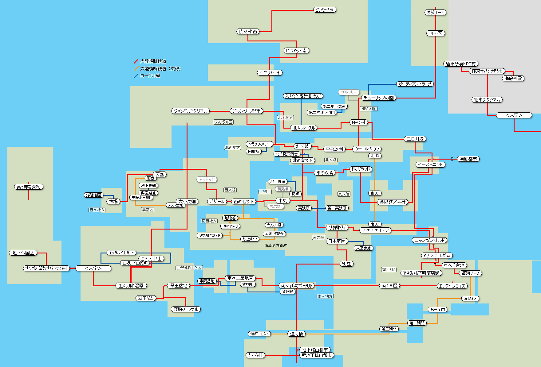 前回に比べると控えめですが、サンゴを望むサバンナの村とエメラルド山岳区の東の名称未定駅と接続され、ネットワークが広がりました。